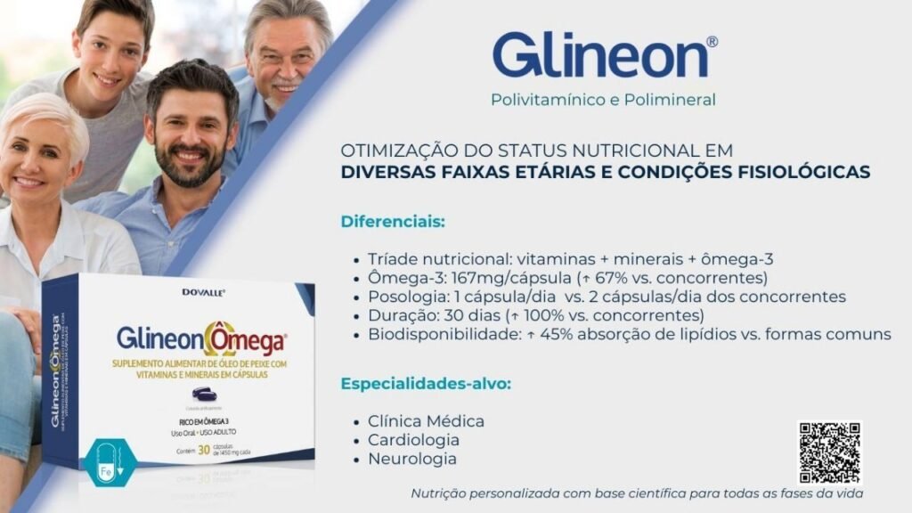 Descubra Glineon® Omega: o suplemento poli-vitamínico/mineral com Ômega-3. Sua fórmula avançada oferece 167mg de Ômega-3 por cápsula, 67% mais que a concorrência. Absorção aprimorada e 30 dias de uso em 1 cápsula diária. Ideal para Cardiologia e Neurologia. Ache essa nutrição completa na Nutrafarm Distribuidora!
