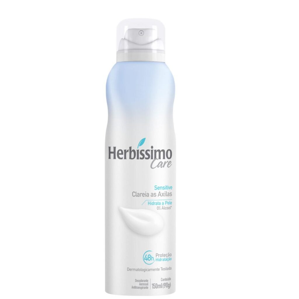 Conheça o Herbíssimo Care Desodorante Spray! Ele é bom para o cuidado das axilas sensíveis, oferecendo 48 horas de proteção contra o suor e o mau odor. Sua fórmula é 0% álcool e dermatologicamente testada, ideal para quem busca clarear e hidratar a pele, garantindo axilas mais macias, luminosas e protegidas, sem irritação. Você encontra este produto na Nutrafarm Distribuidora.