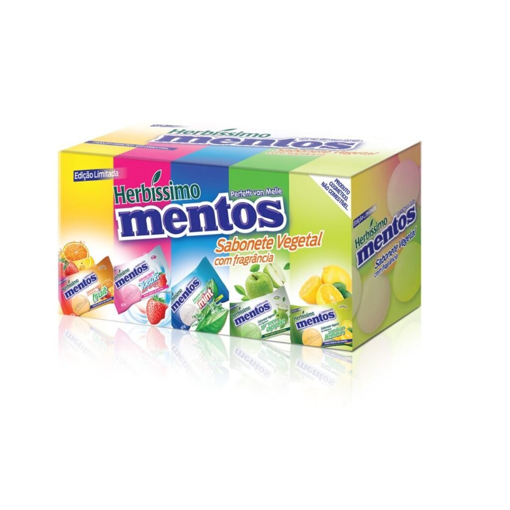 O Sabonete Vegetal Herbíssimo Mentos Edição Limitada proporciona um banho refrescante e divertido com fragrâncias variadas (laranja, morango, menta, limão, Herbal Mentos). Ele limpa, hidrata e deixa a pele com um aroma marcante. Uma colaboração exclusiva com a Perfetti van Melle, disponível na Nutrafarm Distribuidora.