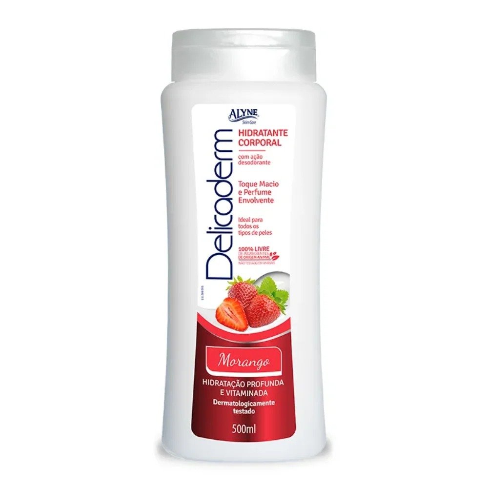 Hidratante Corporal Alyne Delicaderm Morango 500ml – Pele Macia e Perfumada